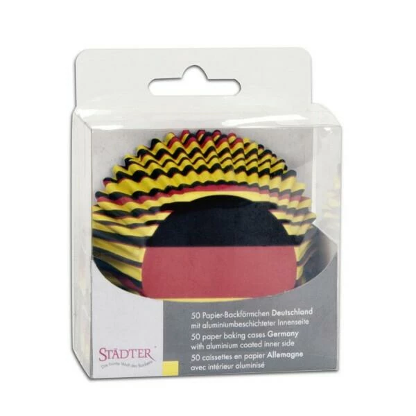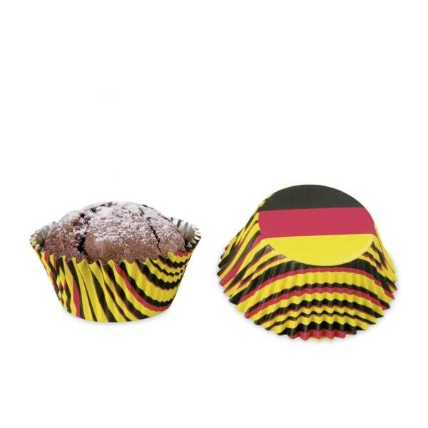 Sie haben internationale Gäste? Überraschen Sie sie doch mit Backförmchen in der passenden Landesfahne. Hier als Motiv “Deutschland”.