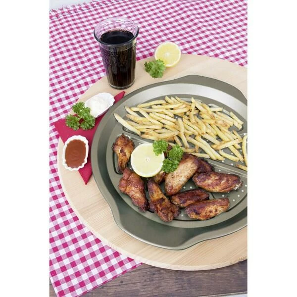 Die optimale Wärmeleitung und die Spezial-Lochung lassen Pizza und Pommes nicht nur besonders knusprig werden, sondern reduzieren auch den Fettanteil in der Zubereitung.